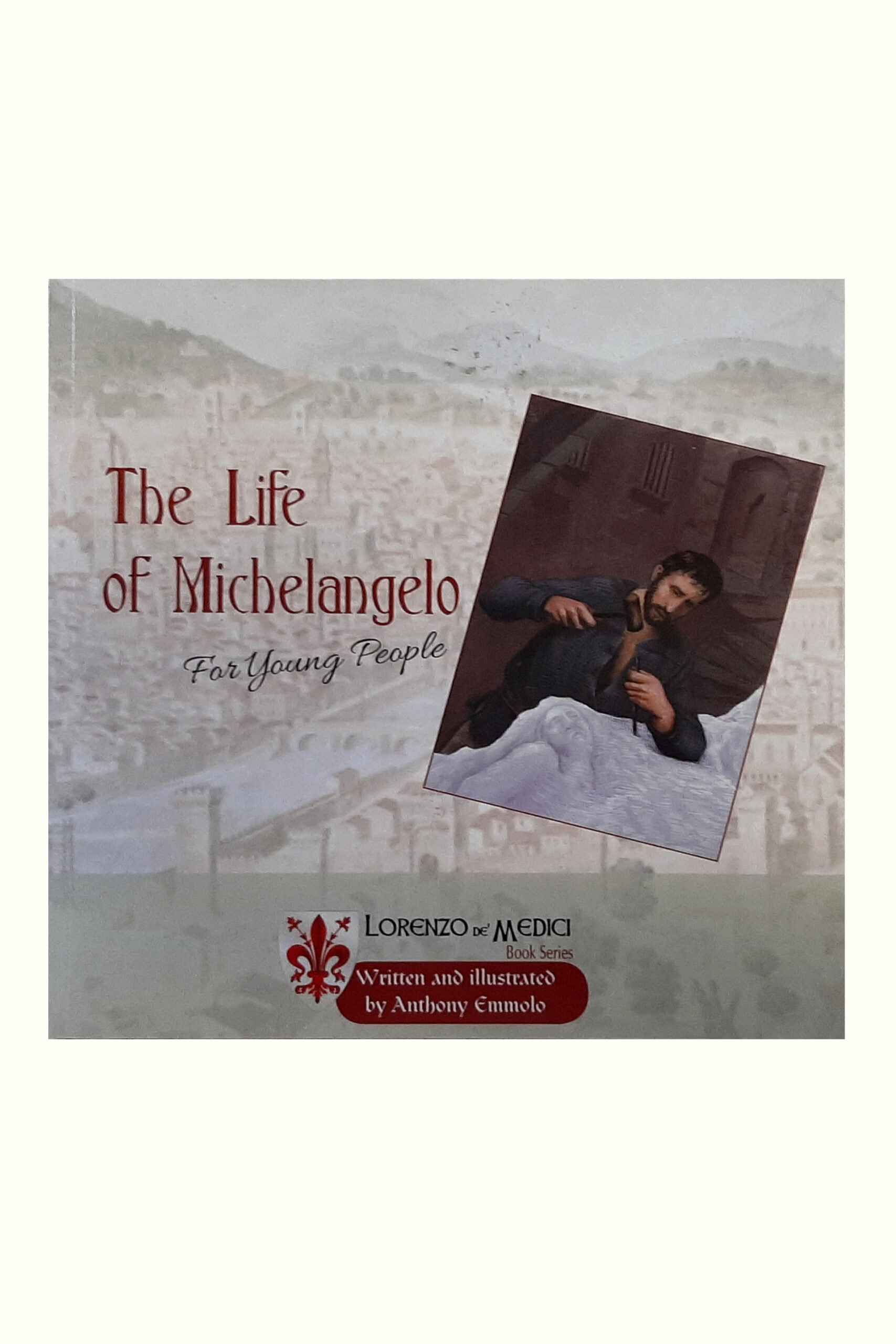 Written and illustrated by Anthony Emmolo. This children’s book, aimed towards middle school students, tells the story of the life of the great artist Michelangelo Buonarroti, and has many thought provoking exercises for the reader with space to write out their answers as well as trivia questions, roleplaying, art projects and discussion exercises.
