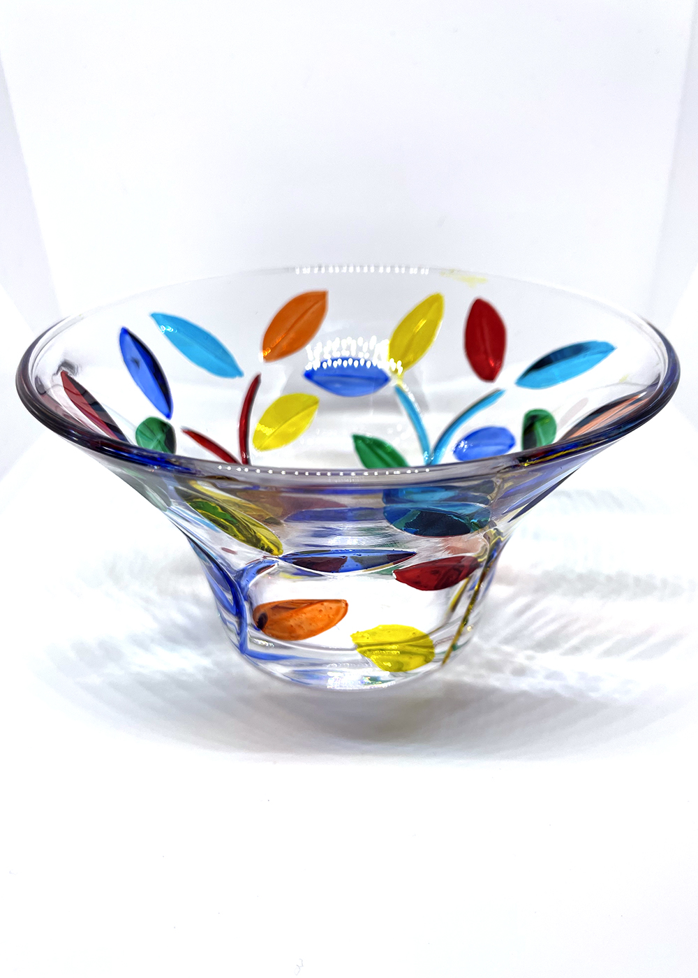 Get this dish for a friend or loved one and get one for yourself! It has so many uses; candy dish, condiment holder, jewelry holder, coin holder. No matter what you put in this Murano dish, it will look beautiful. The flower vine design is a classic pattern and the jewel tones really pop.